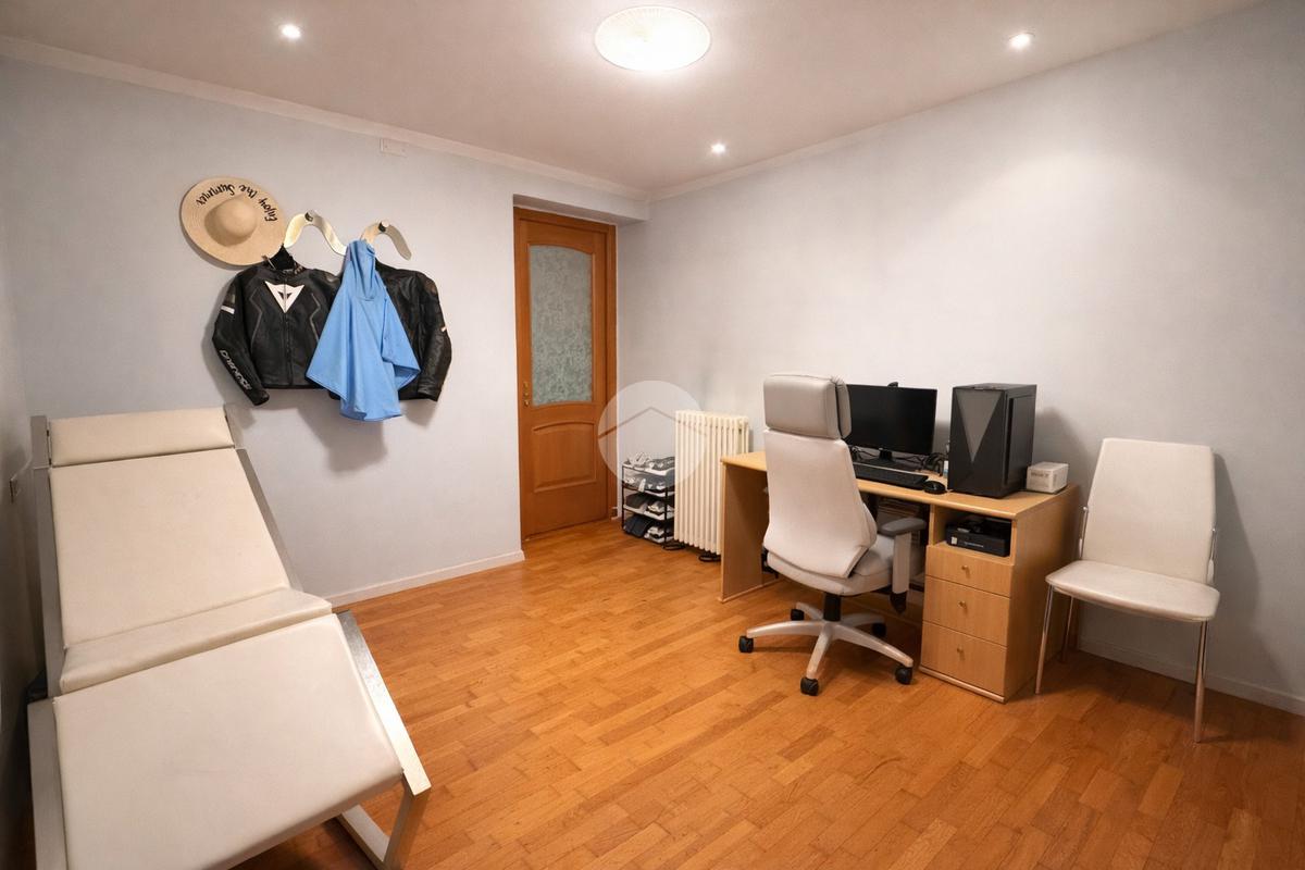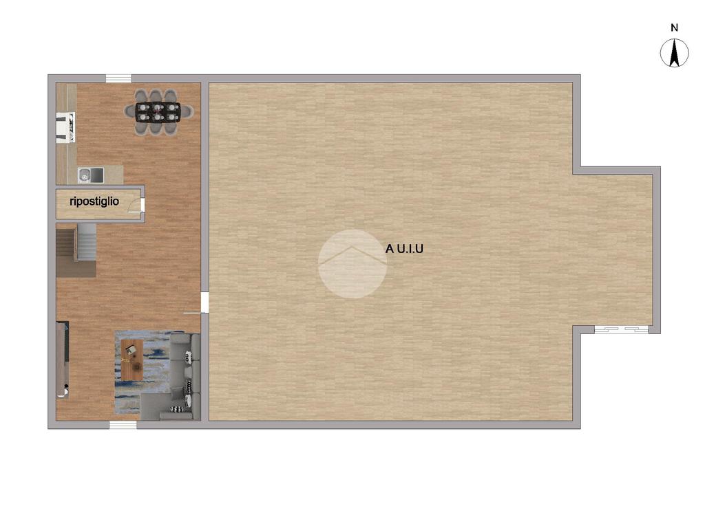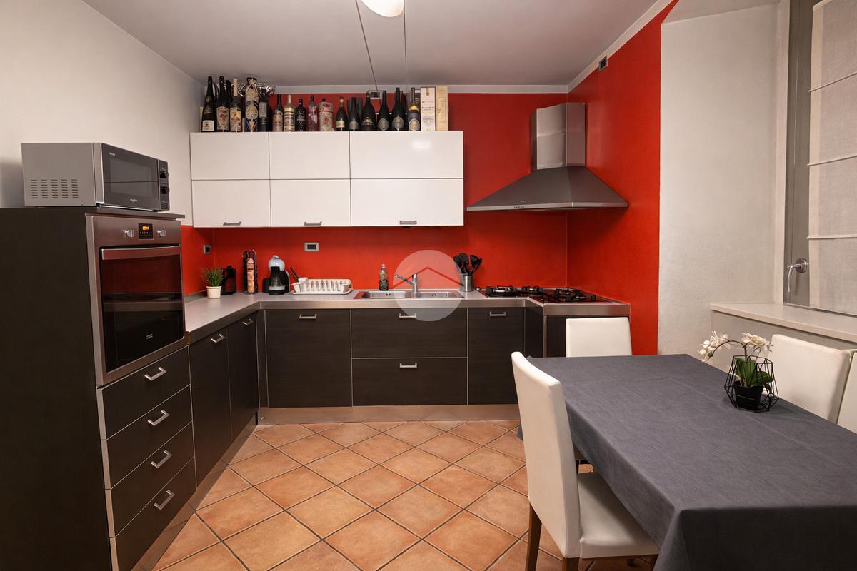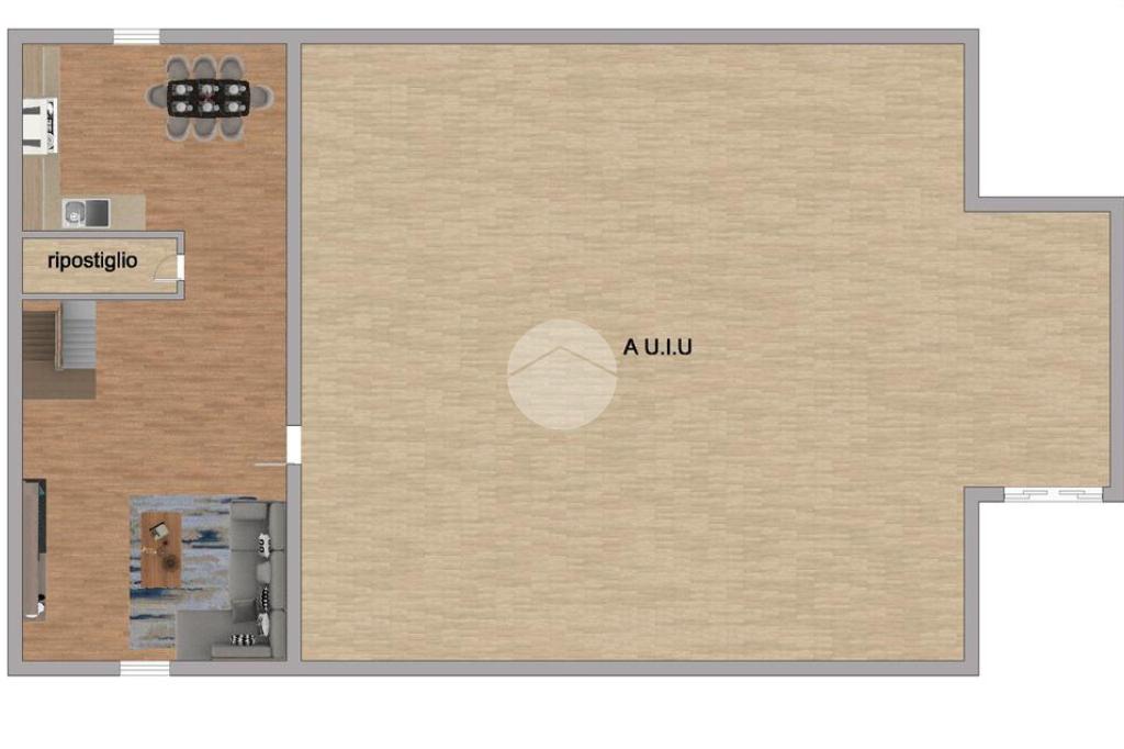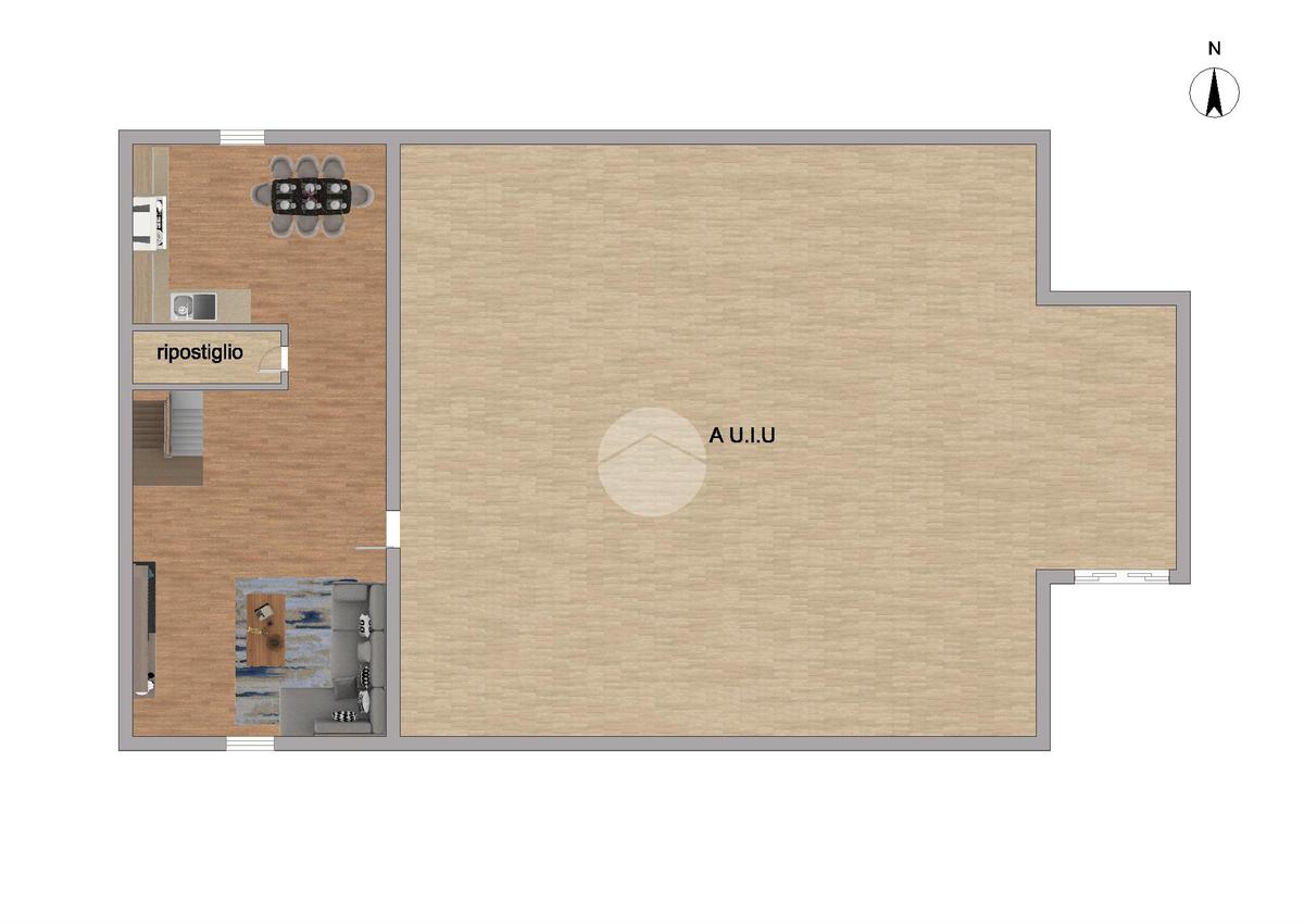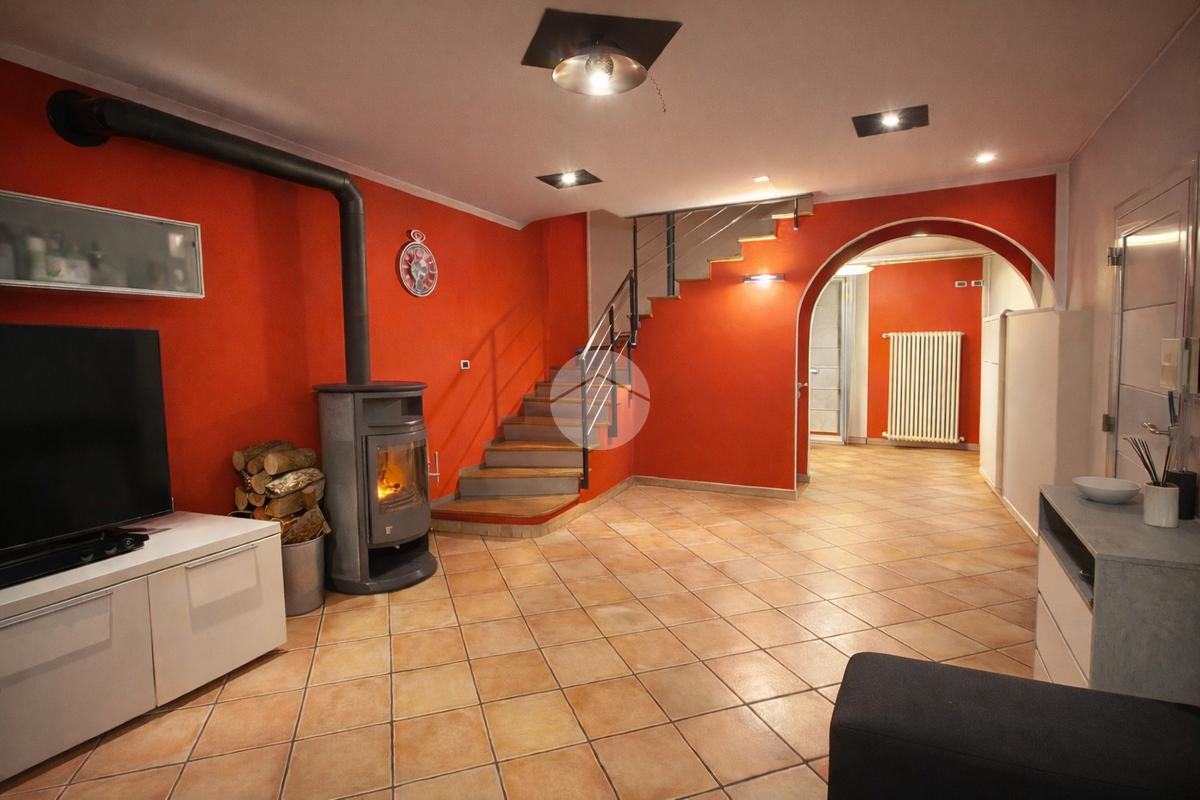L’ingresso si apre su un grande e luminoso soggiorno, reso particolarmente accogliente dalla presenza di una stufa a legna, ideale per creare un’atmosfera calda e conviviale durante la stagione invernale. Dal soggiorno si accede direttamente alla cucina abitabile, spaziosa e ben organizzata, perfetta per la vita quotidiana.