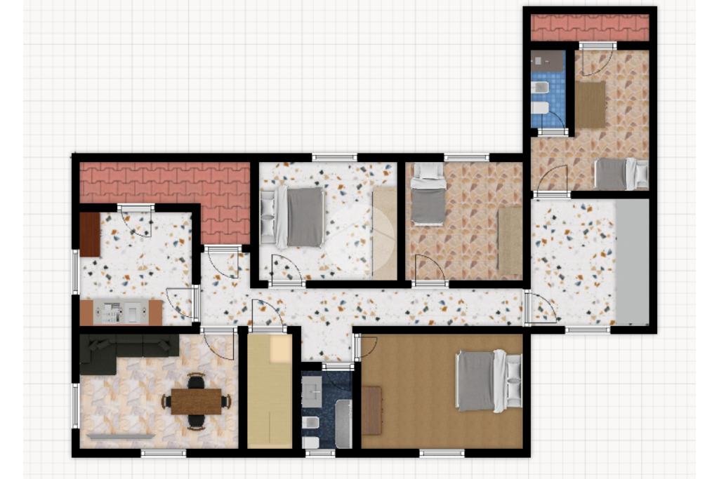 Un comodo corridoio ci accompagna nella zona notte composta da cinque stanze, da destinare a camere, studio o spazi hobby.