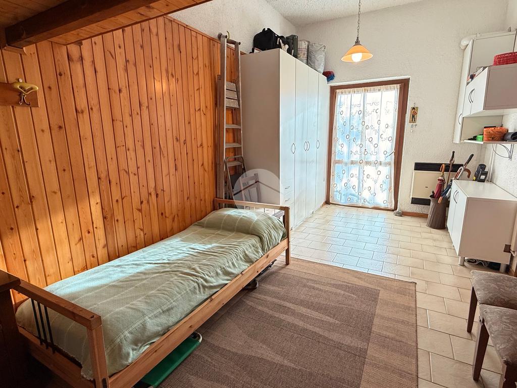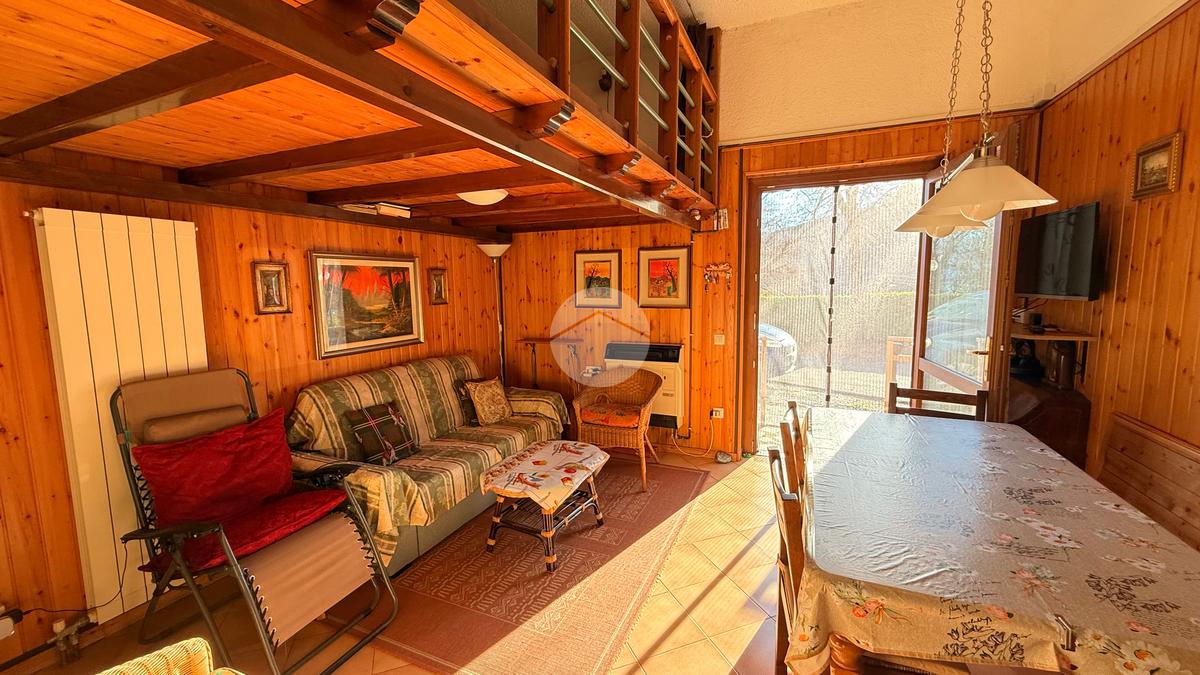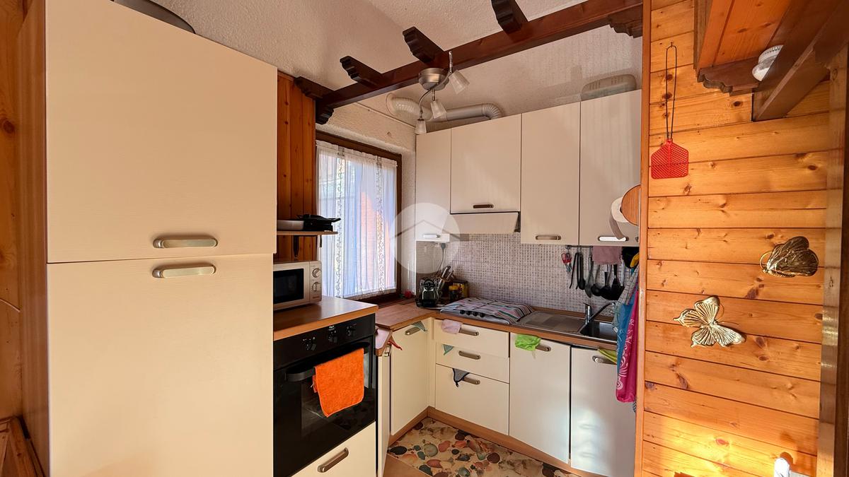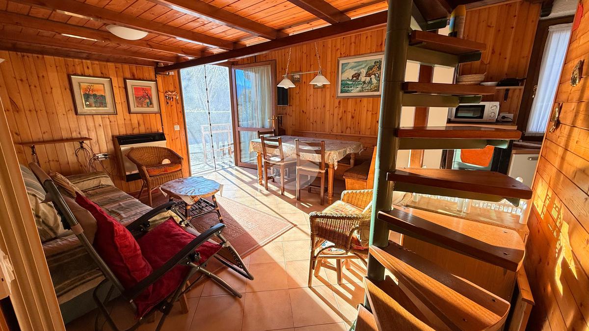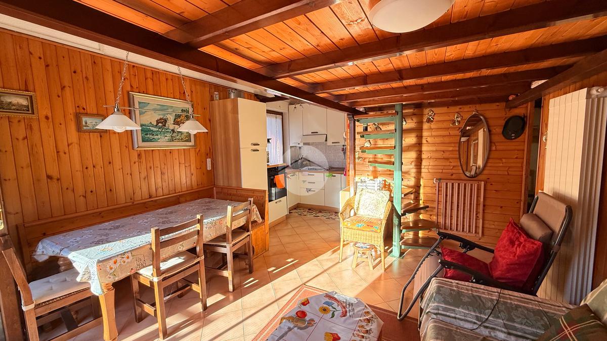 L’immobile si distingue per il suo stile caldo e tipicamente montano, valorizzato da finiture in legno e travi a vista, che creano un’atmosfera autentica e accogliente.