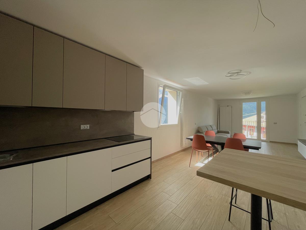 L’abitazione si distingue per la luminosità degli ambienti e la perfetta distribuzione degli spazi: il soggiorno con cucina a vista si apre sul balcone con splendida vista sulla vallata e sul Castello di Breno, mentre la zona notte ospita due ampie camere matrimoniali, un bagno moderno con doccia e un comodo locale lavanderia.
