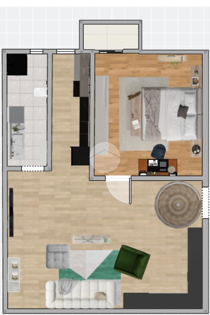 Ogni appartamento presenta una distribuzione funzionale degli spazi ed è composto da zona giorno con cucina, ampia camera matrimoniale ben illuminata e bagno finestrato. Tutte le unità dispongono di balcone privato, con affacci aperti e gradevoli sul contesto circostante.