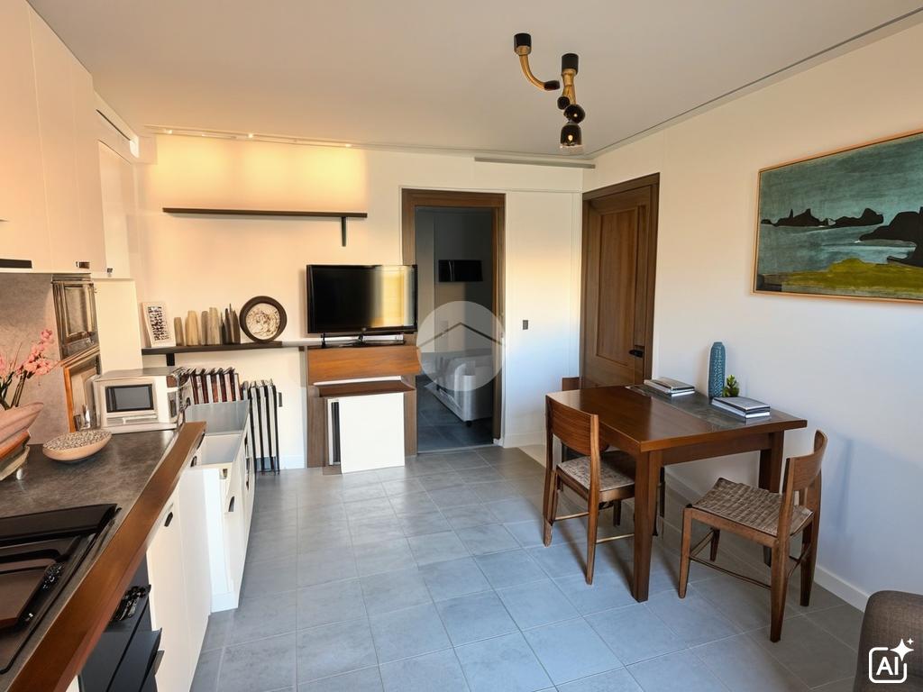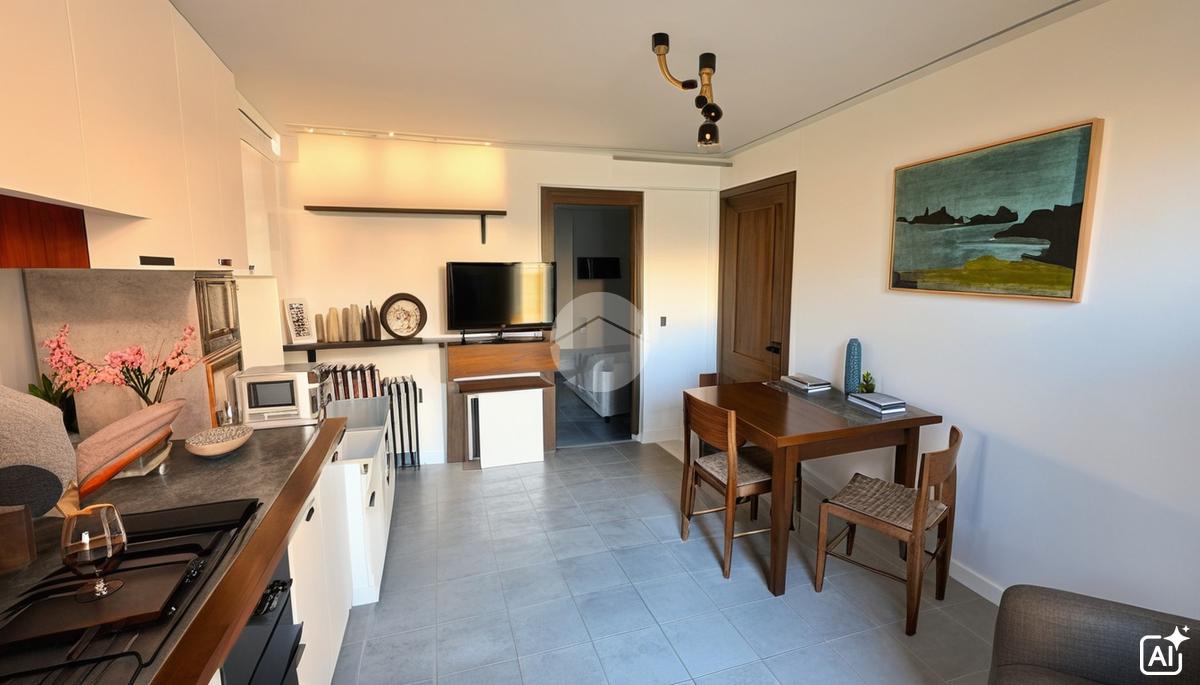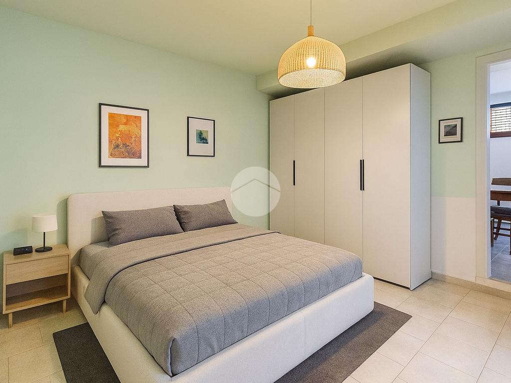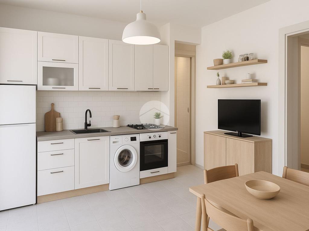 L’appartamento si apre su un luminoso soggiorno open-space con cucina a vista, uno spazio accogliente dove poter vivere momenti di relax. La zona notte comprende una camera matrimoniale con bagno privato, ideale per garantire la massima privacy, e un secondo bagno finestrato con doccia a servizio del soggiorno e degli ospiti.