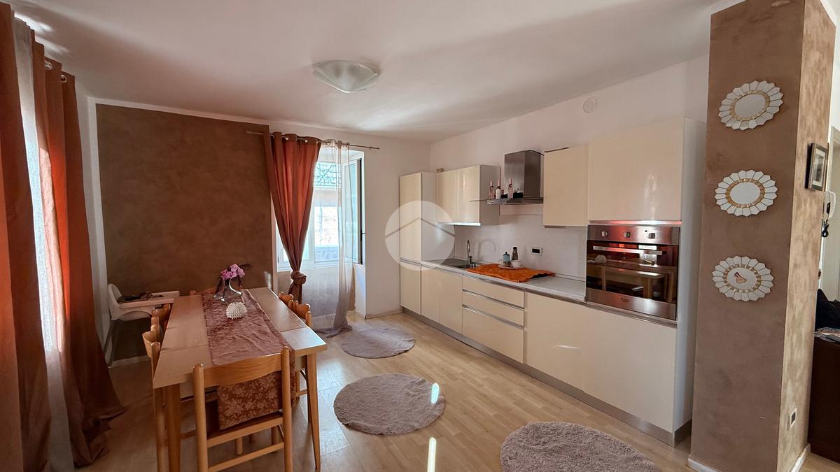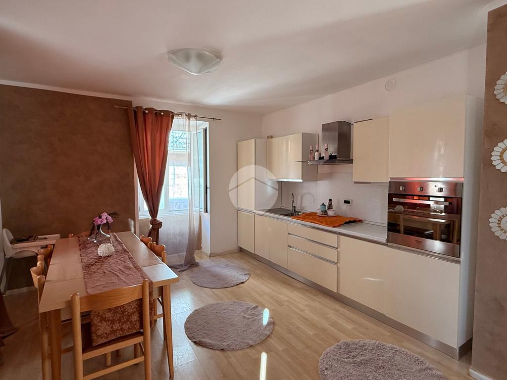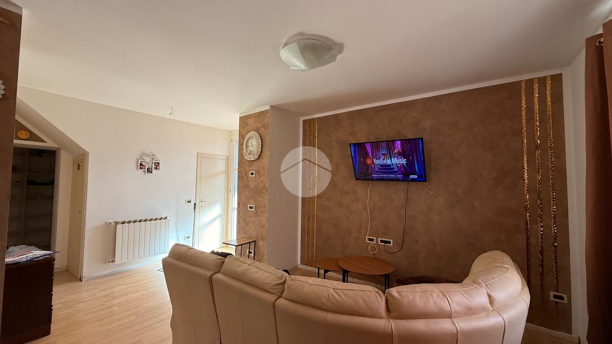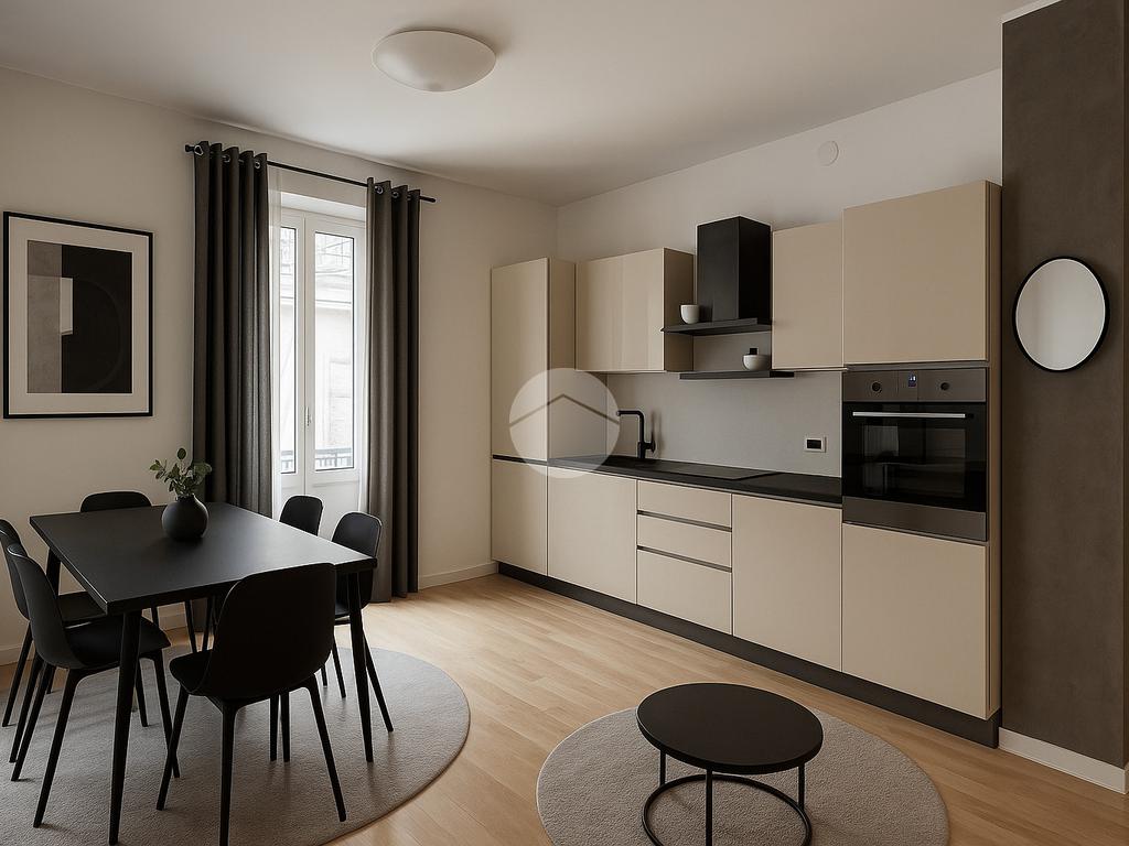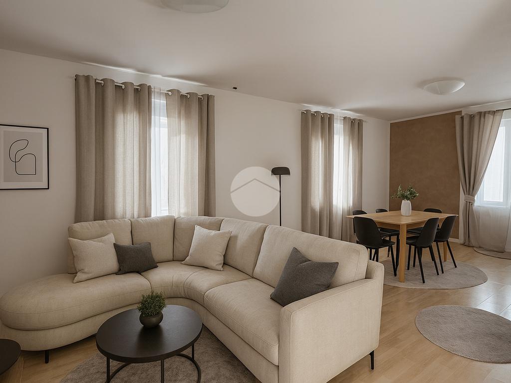 L’appartamento si apre su un’ampia zona giorno open-space, che unisce soggiorno e cucina, creando un ambiente luminoso e accogliente.