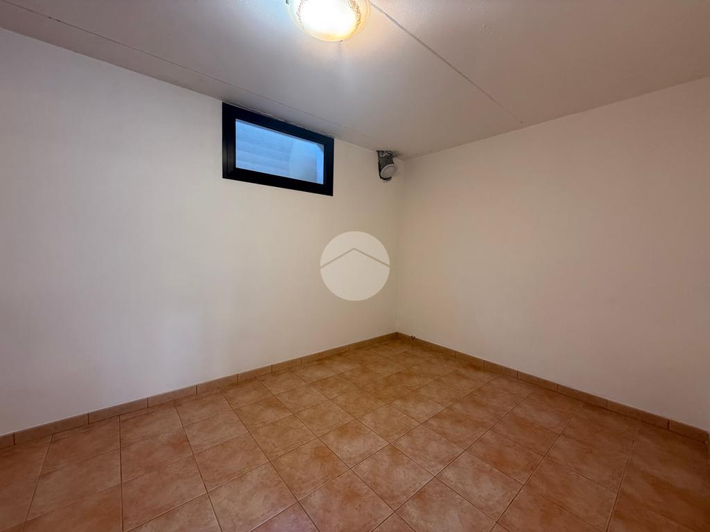 Dal disimpegno tra il soggiorno e il bagno, una scala interna conduce al piano seminterrato, dove si sviluppa una taverna di generose dimensioni, collegata direttamente alla lavanderia ed al box auto doppio. Esternamente è inoltre presente una zona esclusiva adibita a parcheggio, ideale per ospitare ulteriori due autovetture.