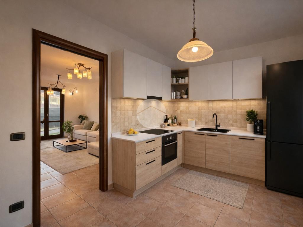 L’abitazione, costruita nel 2002, si presenta in eccellenti condizioni, sempre conservata e mantenuta con grande cura, risultando oggi pari al nuovo. L’ingresso avviene tramite un vialetto privato che conduce alla porta principale, aprendo su un ampio e luminoso living con cucina separata predisposta ad angolo e con accesso diretto al balcone. Il piano terra è completato da un bagno finestrato caratterizzato da ottime finiture.