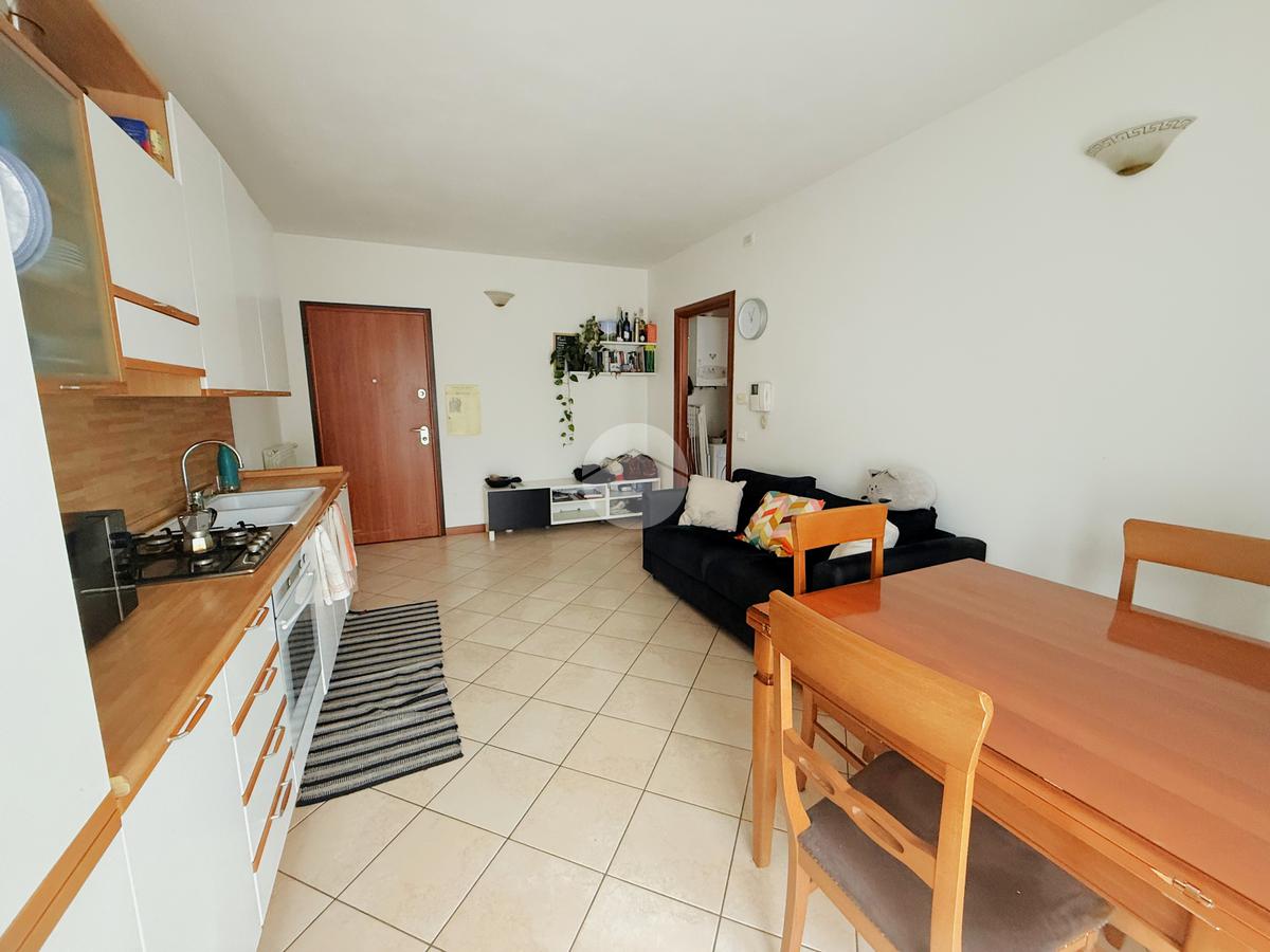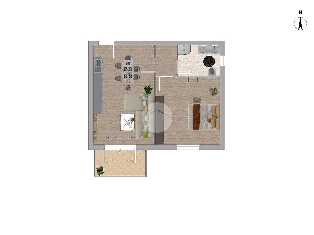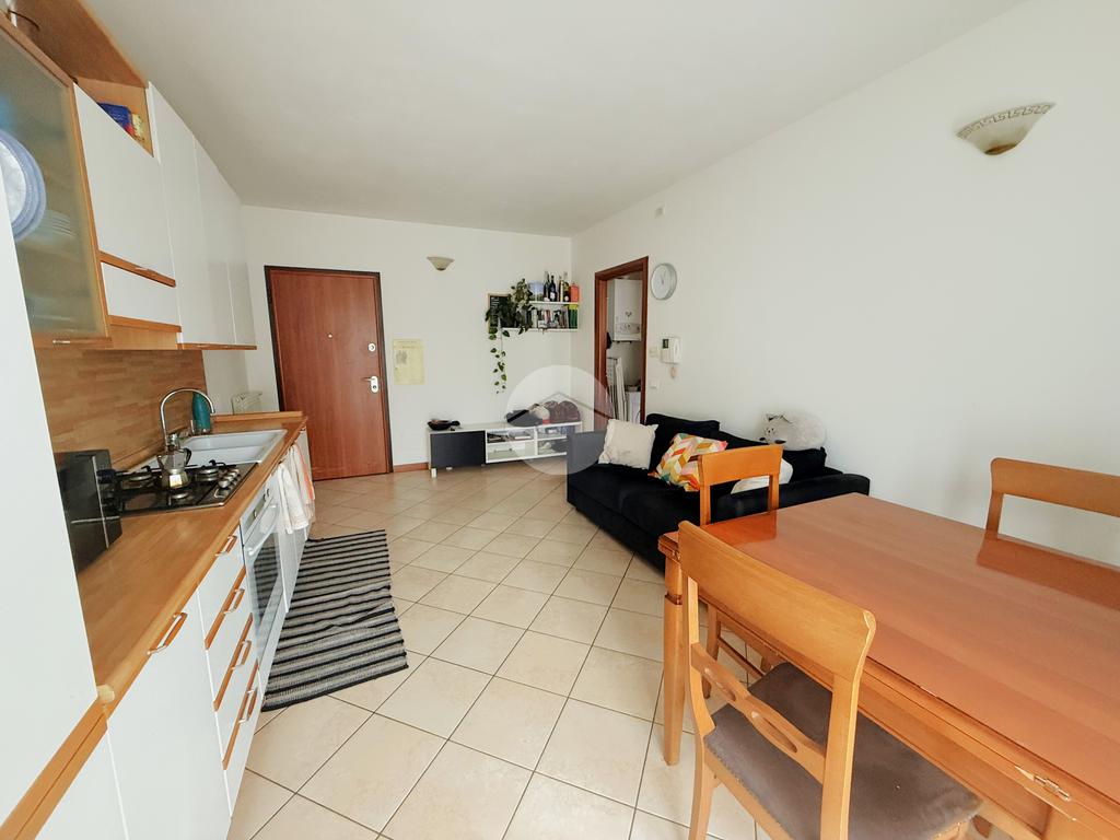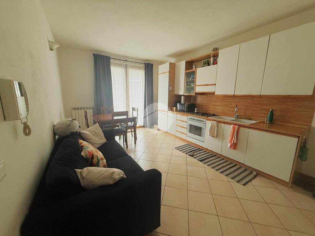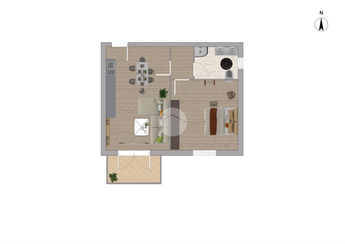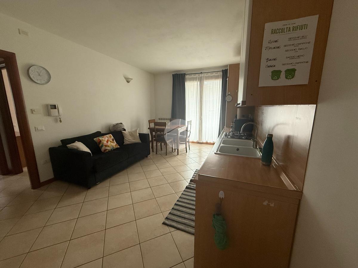 L'appartamento, situato nelle vicinanze di numerosi servizi, si compone di una spaziosa zona giorno con angolo cottura, resa particolarmente luminosa grazie all’accesso diretto al terrazzo perfetto per momenti di relax.
