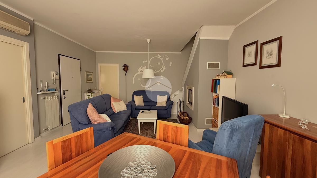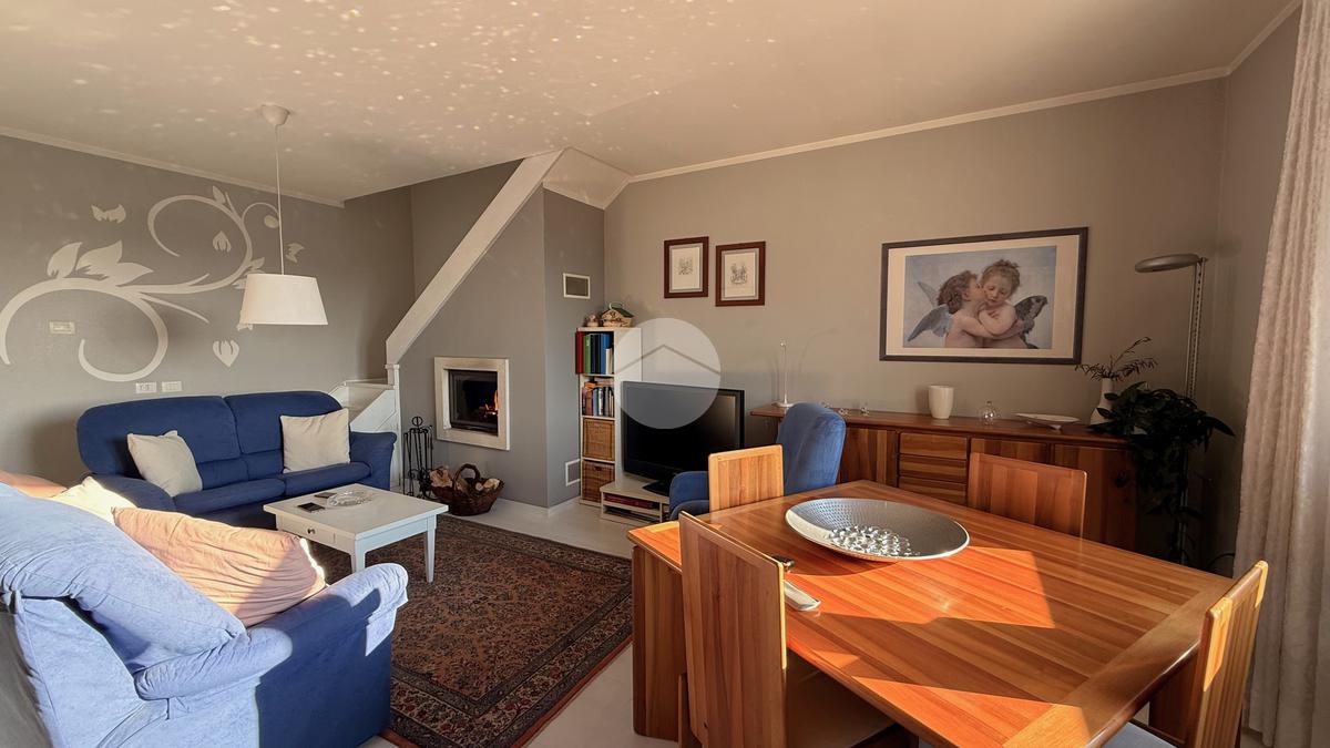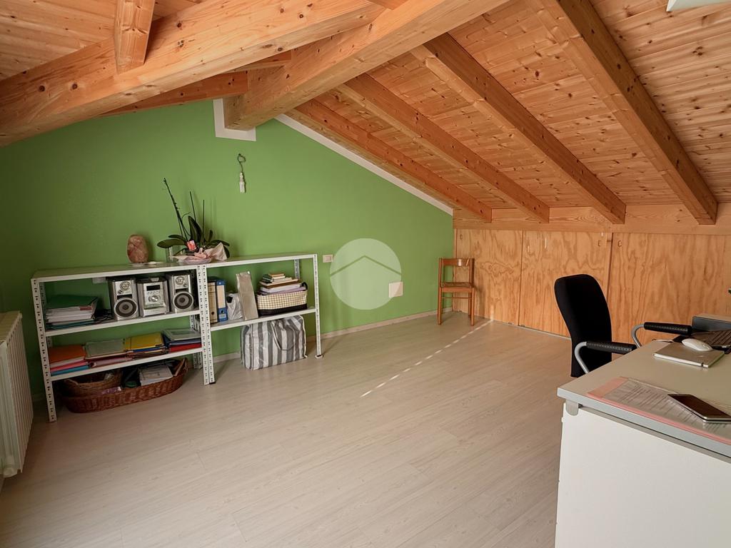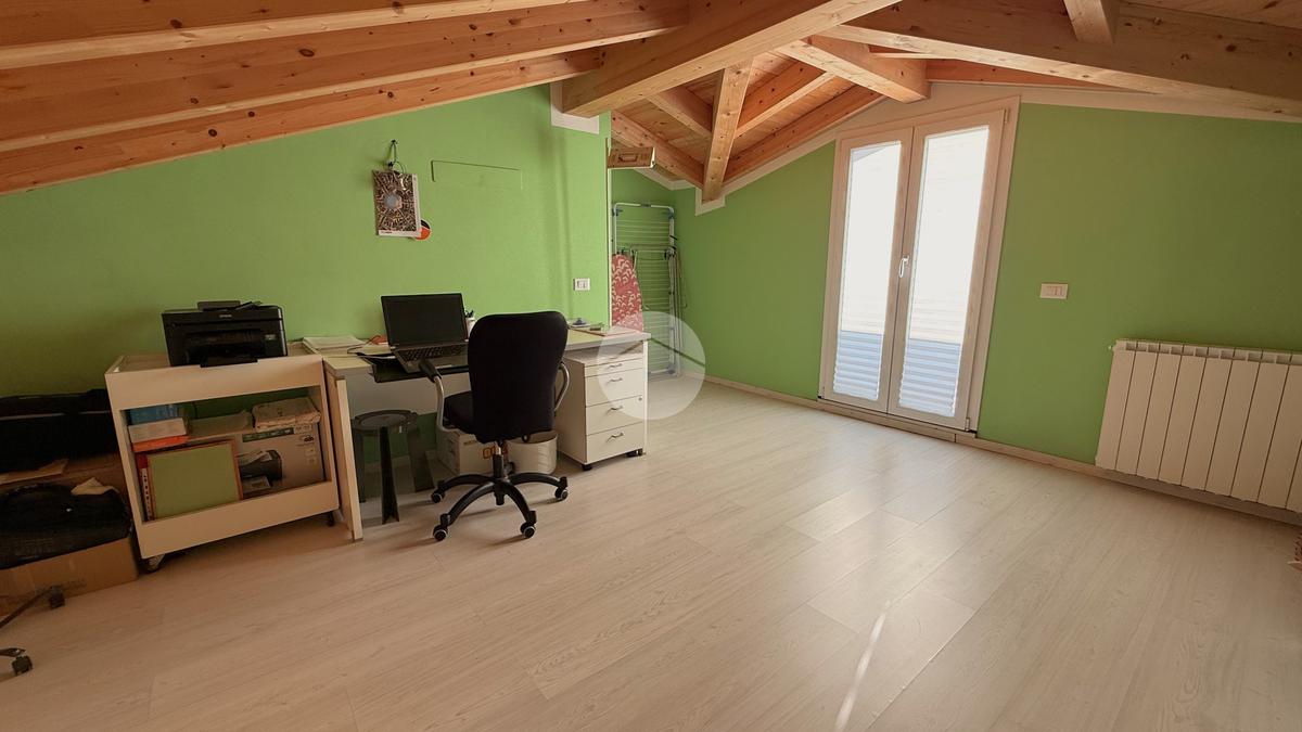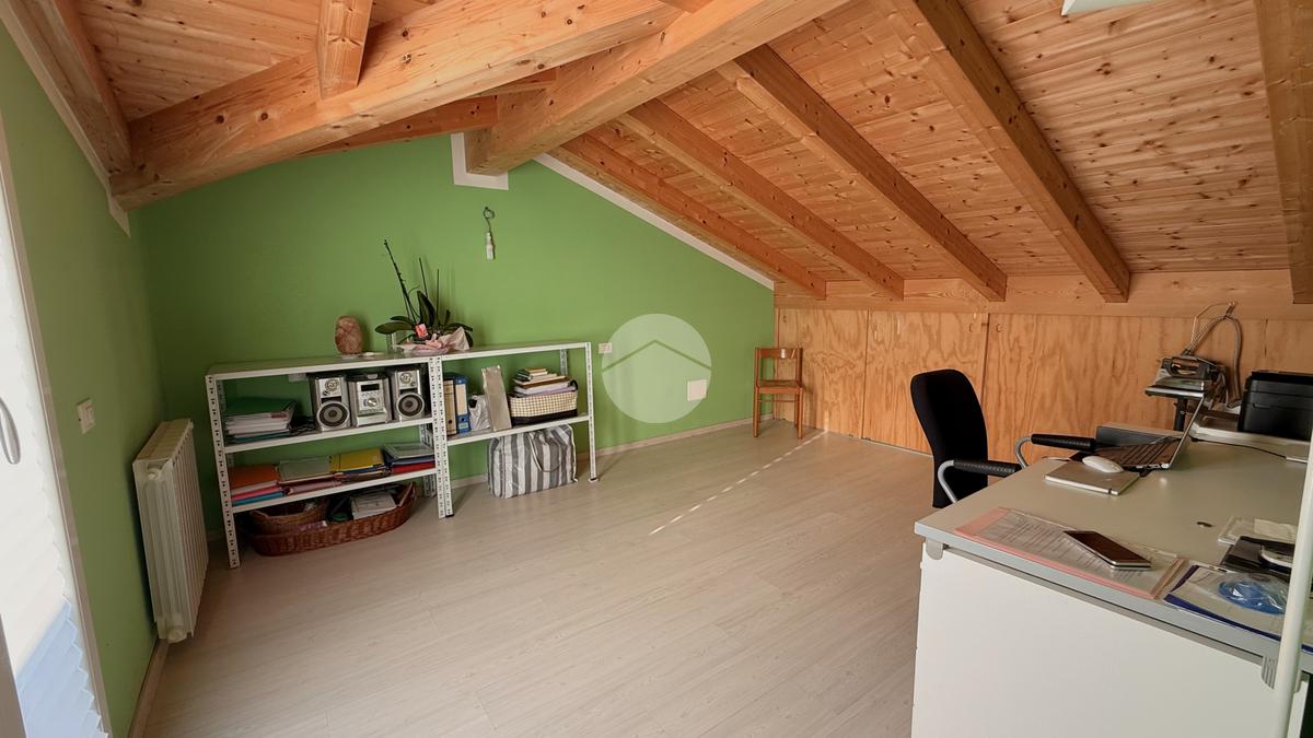 Una scala interna conduce al livello superiore, dove si trova la mansarda, valorizzata da un solarium privato che aggiunge un piacevole spazio esterno riservato.