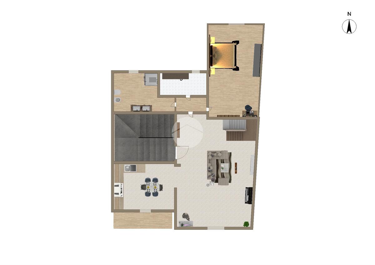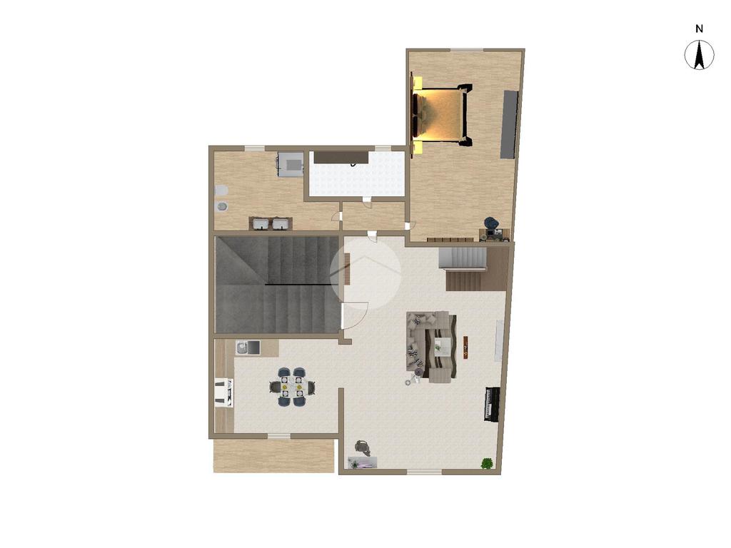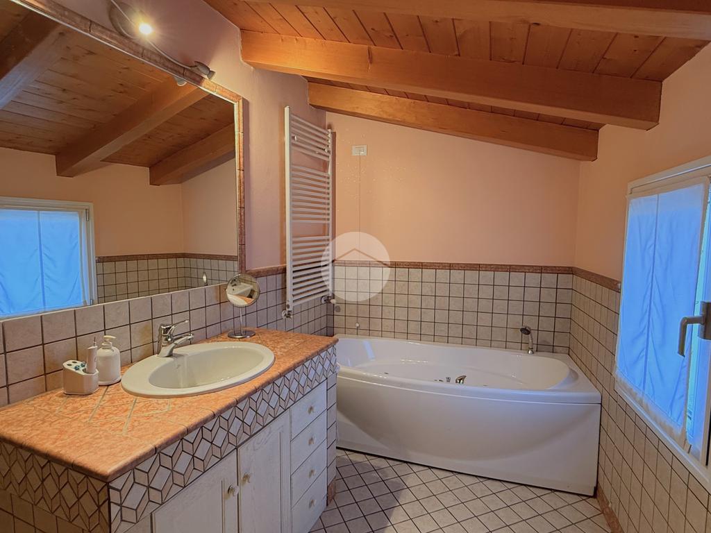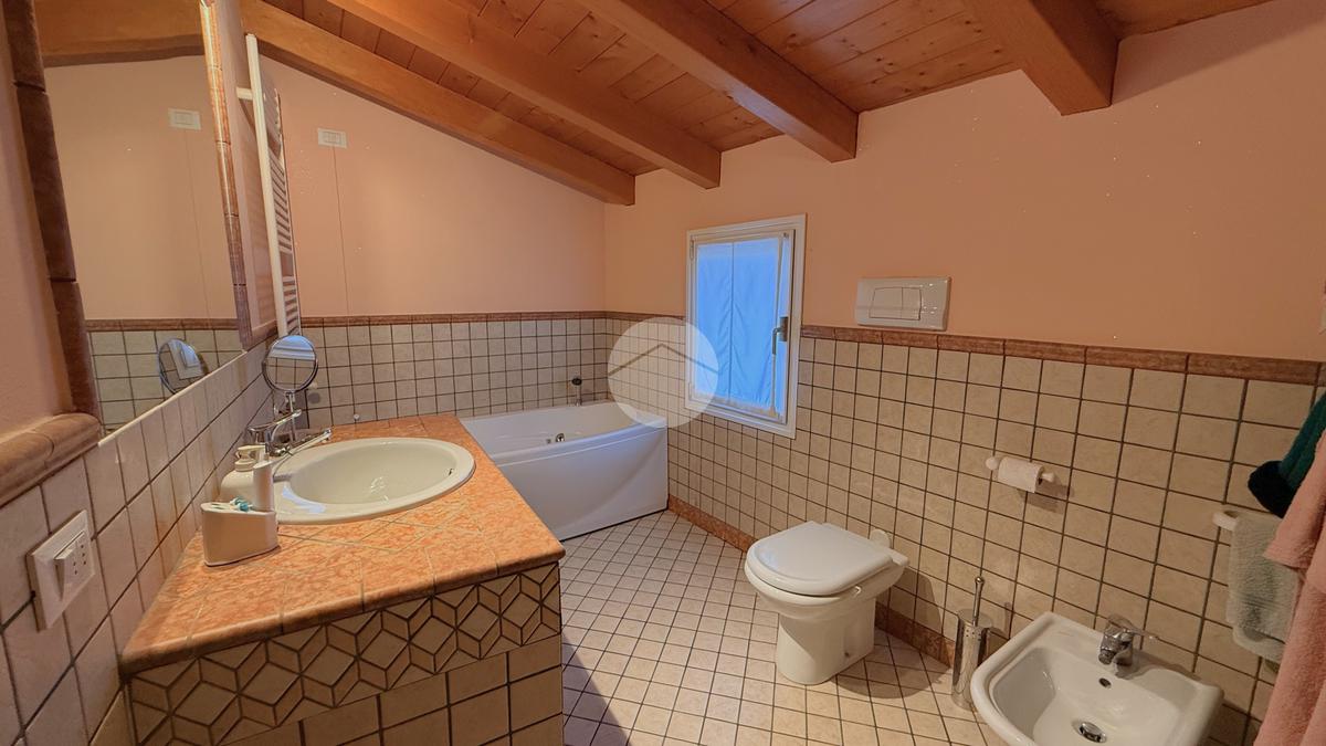 Una scala interna conduce al livello superiore, dove si trova la mansarda, valorizzata da un solarium privato che aggiunge un piacevole spazio esterno riservato.
