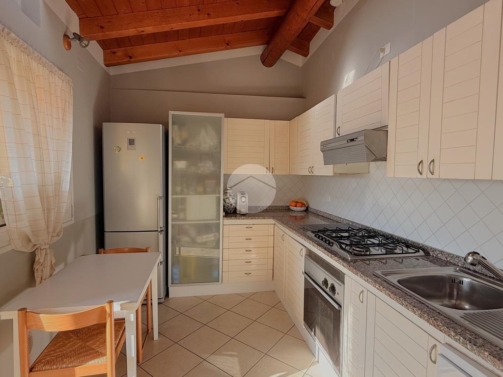 La cucina è abitabile e separata, con accesso diretto al terrazzo vivibile, perfetto per momenti di relax all’aperto.
