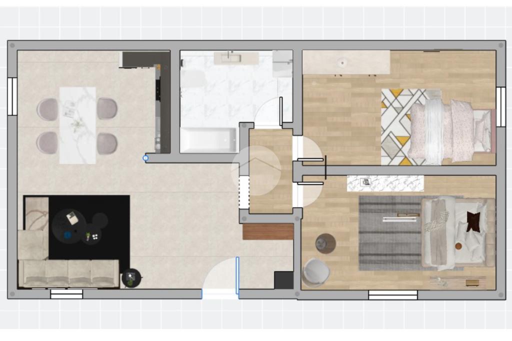 L’abitazione si apre su un'ampia zona giorno, composta da soggiorno e cucina abitabile in un unico ambiente, ideale per trascorrere momenti in famiglia o con gli amici.