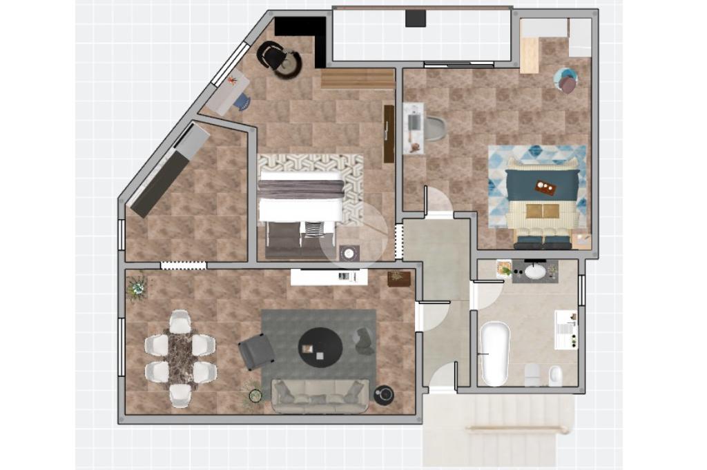 L’appartamento si distingue per gli ambienti funzionali e ben distribuiti: le due camere matrimoniali sono spaziose e confortevoli, e una di esse gode dell’accesso diretto a un balcone, perfetto per rilassarsi all’aria aperta e godere del panorama.