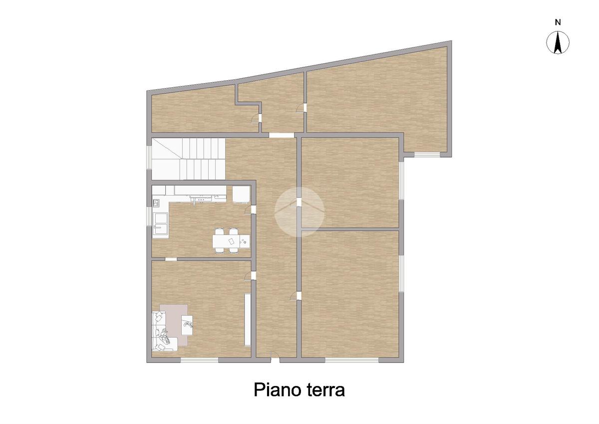 Il primo appartamento si trova al piano terra. L’ingresso conduce a un disimpegno centrale che collega in modo funzionale i diversi ambienti della casa. Da qui si accede alla cucina abitabile, al soggiorno e alla zona notte composta da due camere da letto, oltre al bagno. L’immobile dispone inoltre di una cantina e di un pratico ripostiglio, spazi utili per il deposito e l’organizzazione degli oggetti di uso quotidiano.