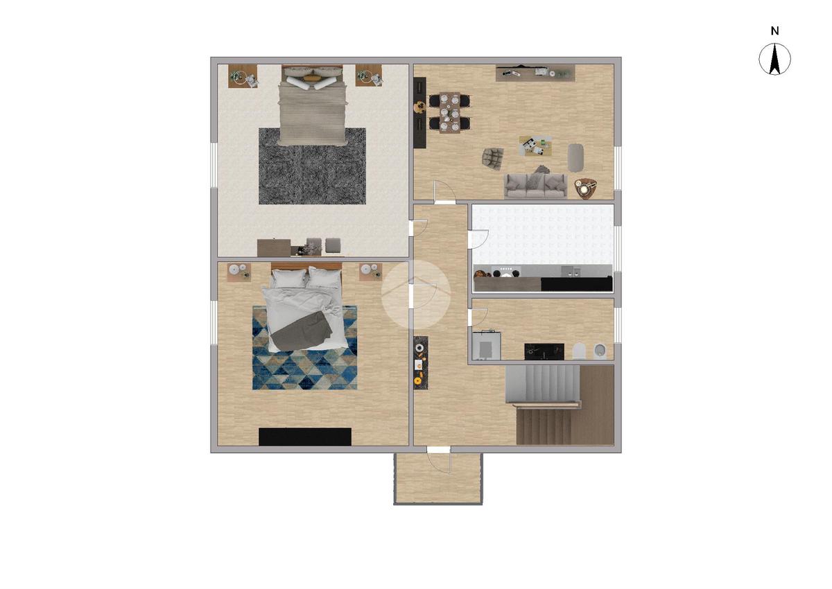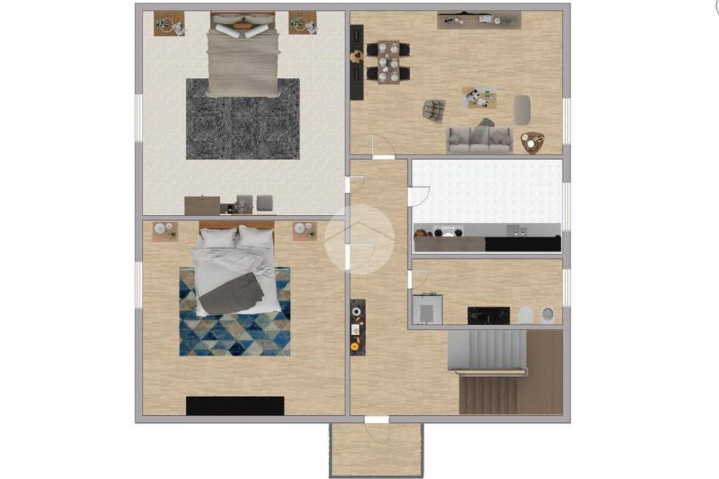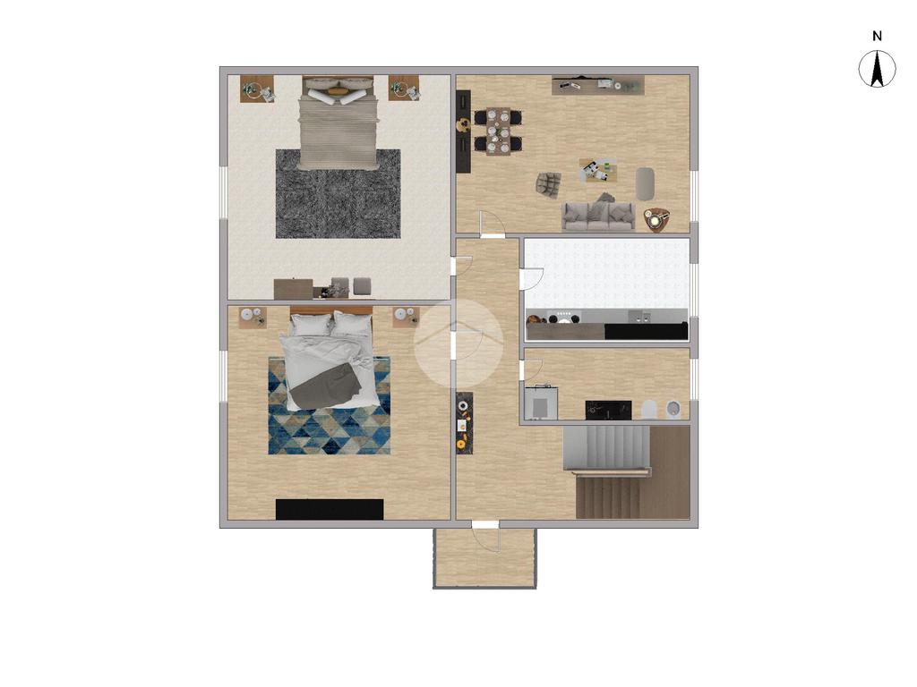 All’ingresso ci accoglie un comodo disimpegno che conduce ai diversi ambienti della casa. L’appartamento è composto da due spaziose camere matrimoniali, ideali per garantire comfort e privacy, un luminoso soggiorno perfetto per i momenti di relax, una cucina abitabile funzionale e un bagno finestrato completo di doccia.